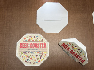 We are pleased to present a new application for our AeroDieCut — a set of coasters designed to demonstrate six different finishing techniques simultaneously.